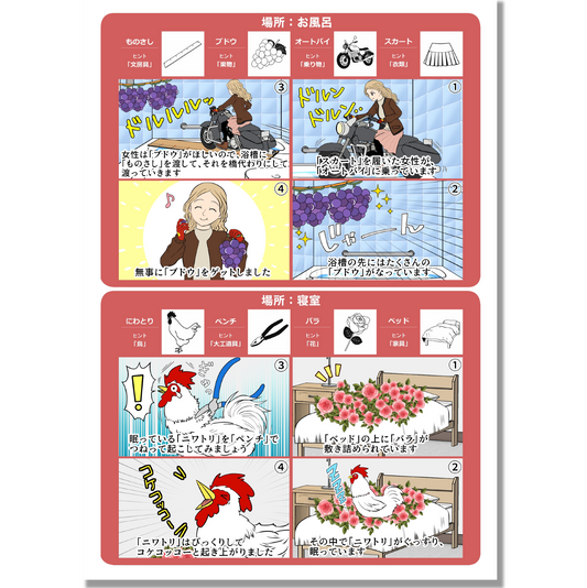 【冊子】認知機能検査のイラストを4コマ漫画で覚える方法